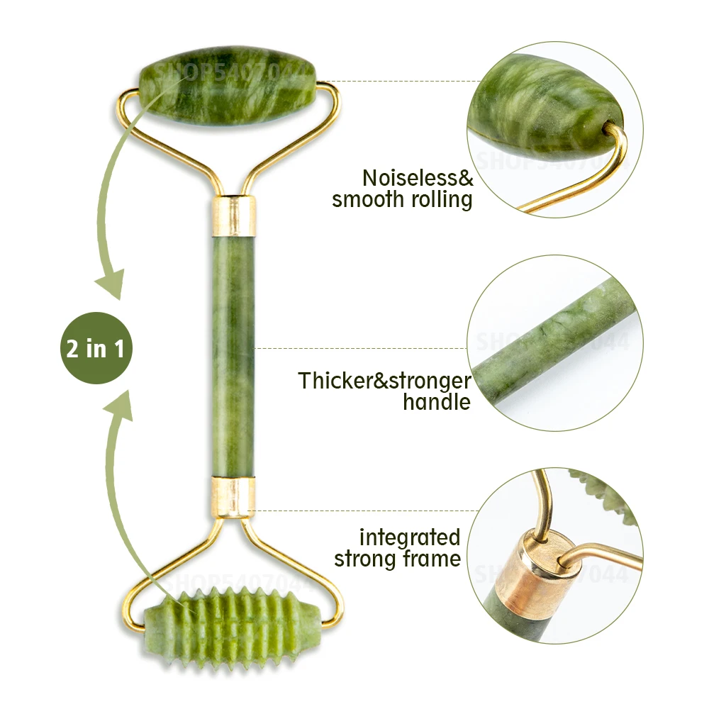 Facial Massage Roller Guasha Board Double Heads Jade Stone Face Lift Body Skin Relaxation Slimming Beauty Neck Thin LiftBuy Now On Aliexpress