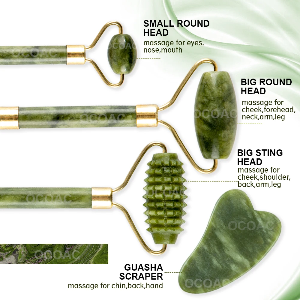 | Massager For Face Jade Roller Facial Skin Care Tools Natural Gouache Scraper Body Back Beauty Slimming Massagers Roller Set |