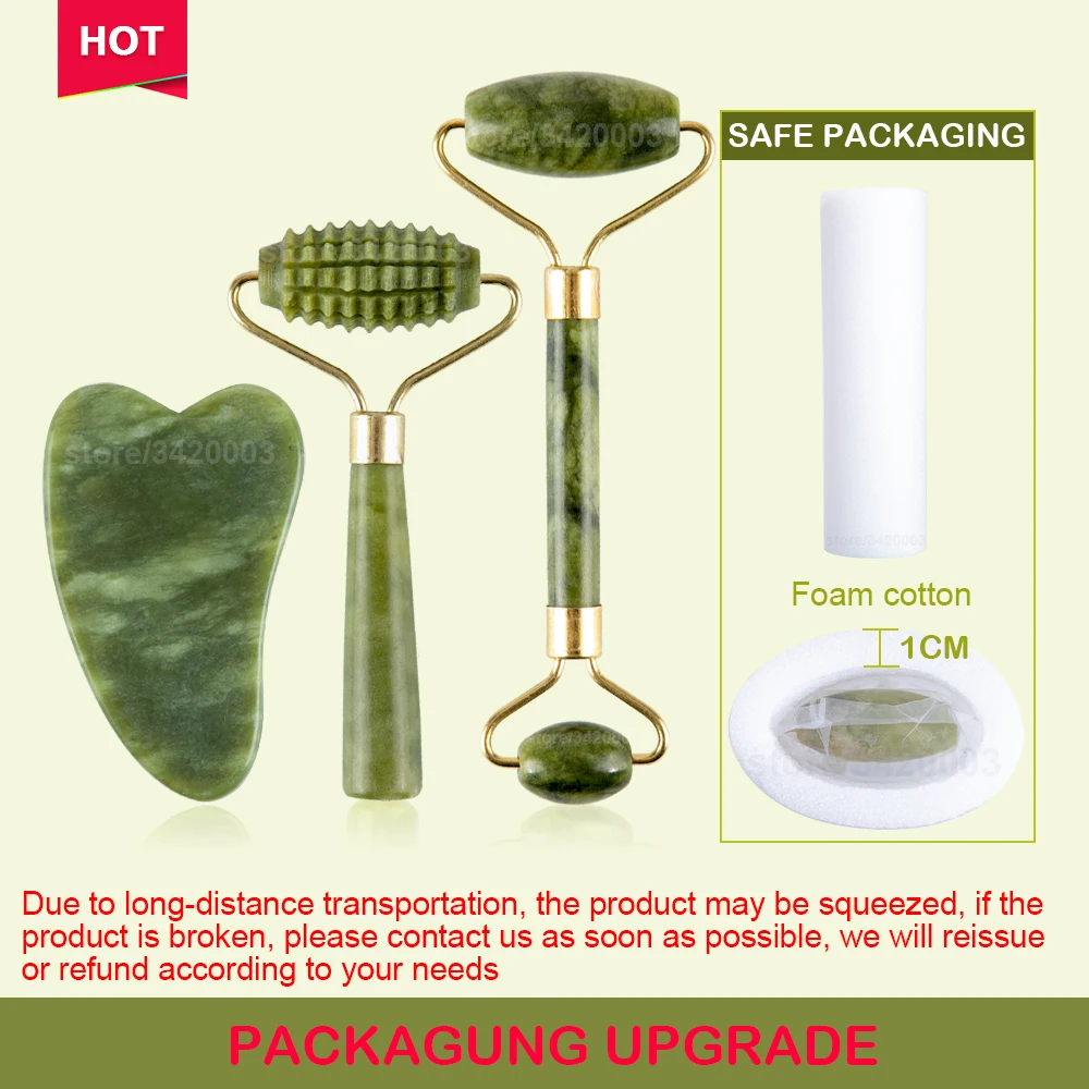 Best Price Comparison With Massager For Face Jade Roller Facial Skin Care Tools Natural Gouache Scraper Body Back Beauty Slimming Massagers Roller Set