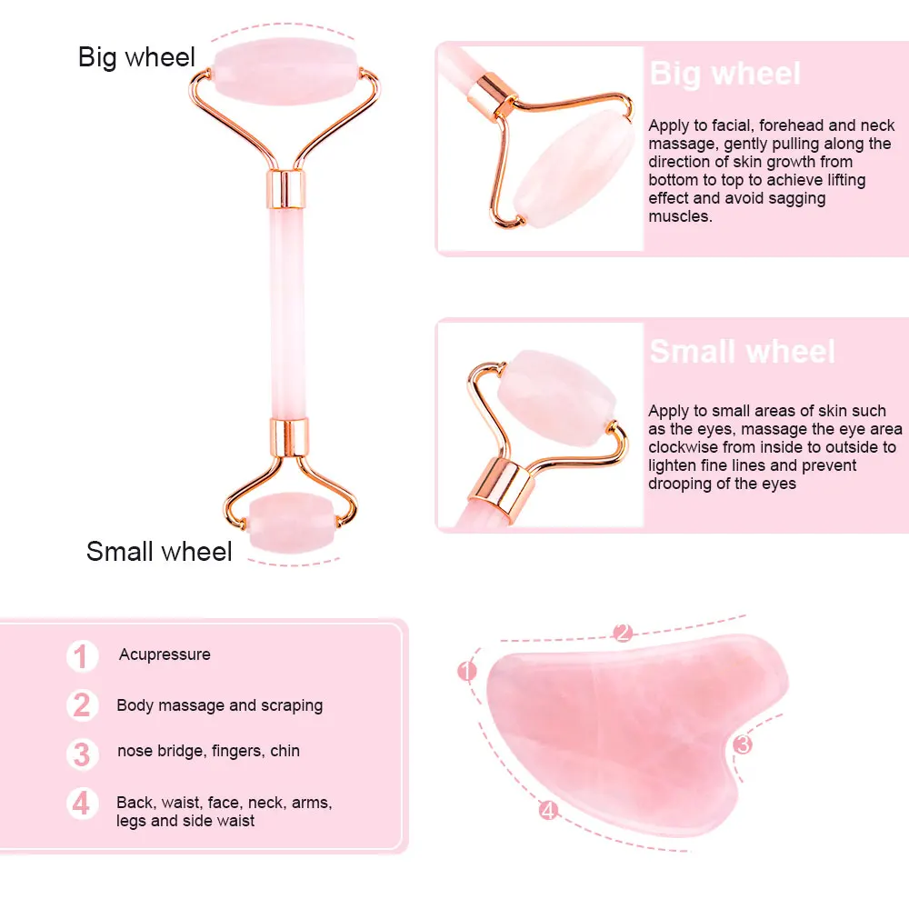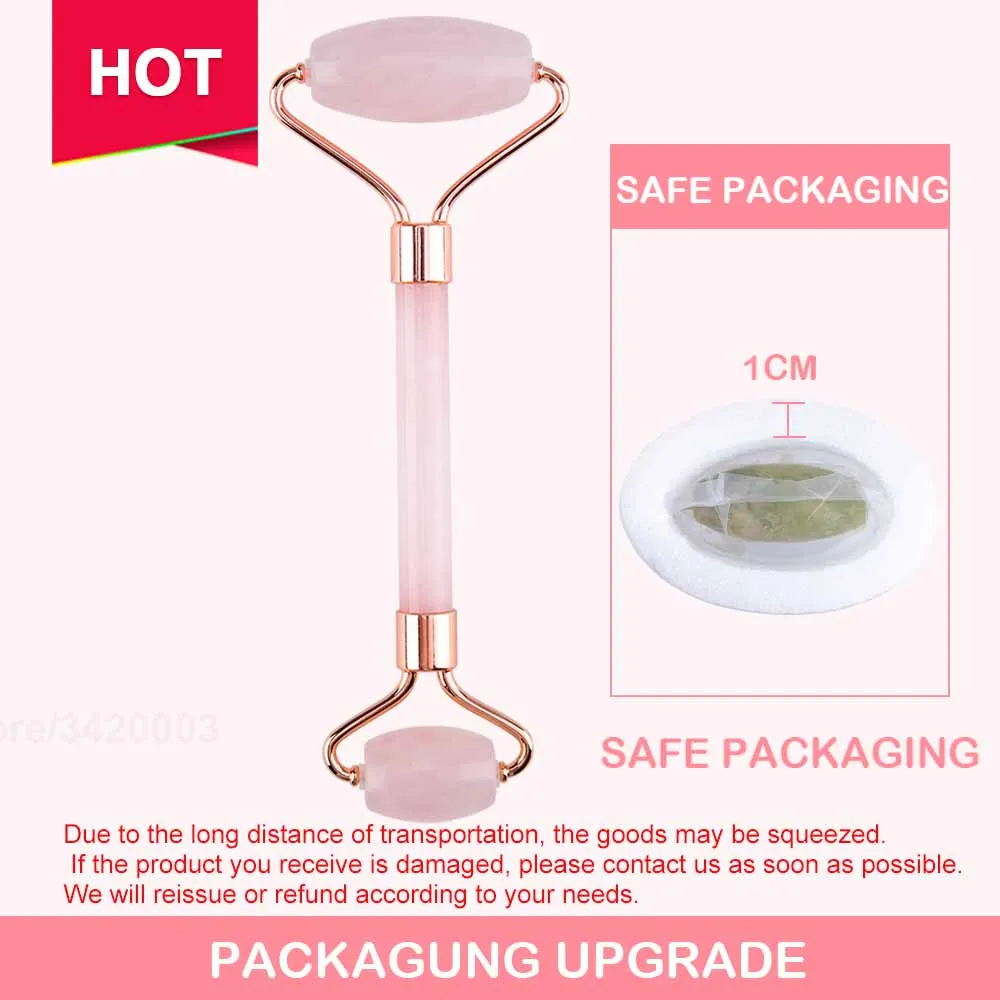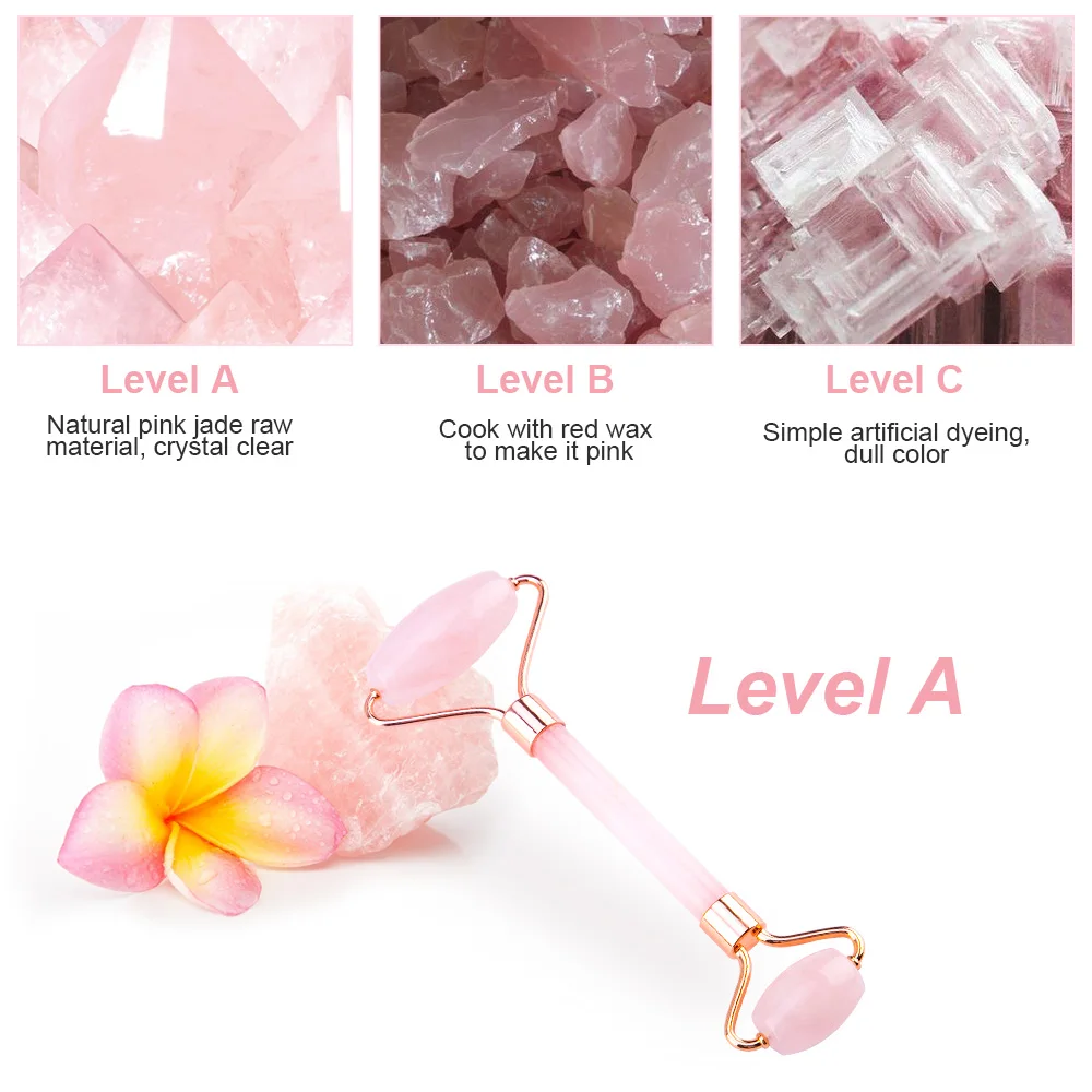 | Massager For Face Lift Up Jade Stone Roller Rose Quartz Natural Crystal Stone Slimming Thin Chin Facial Skin Care Tool |