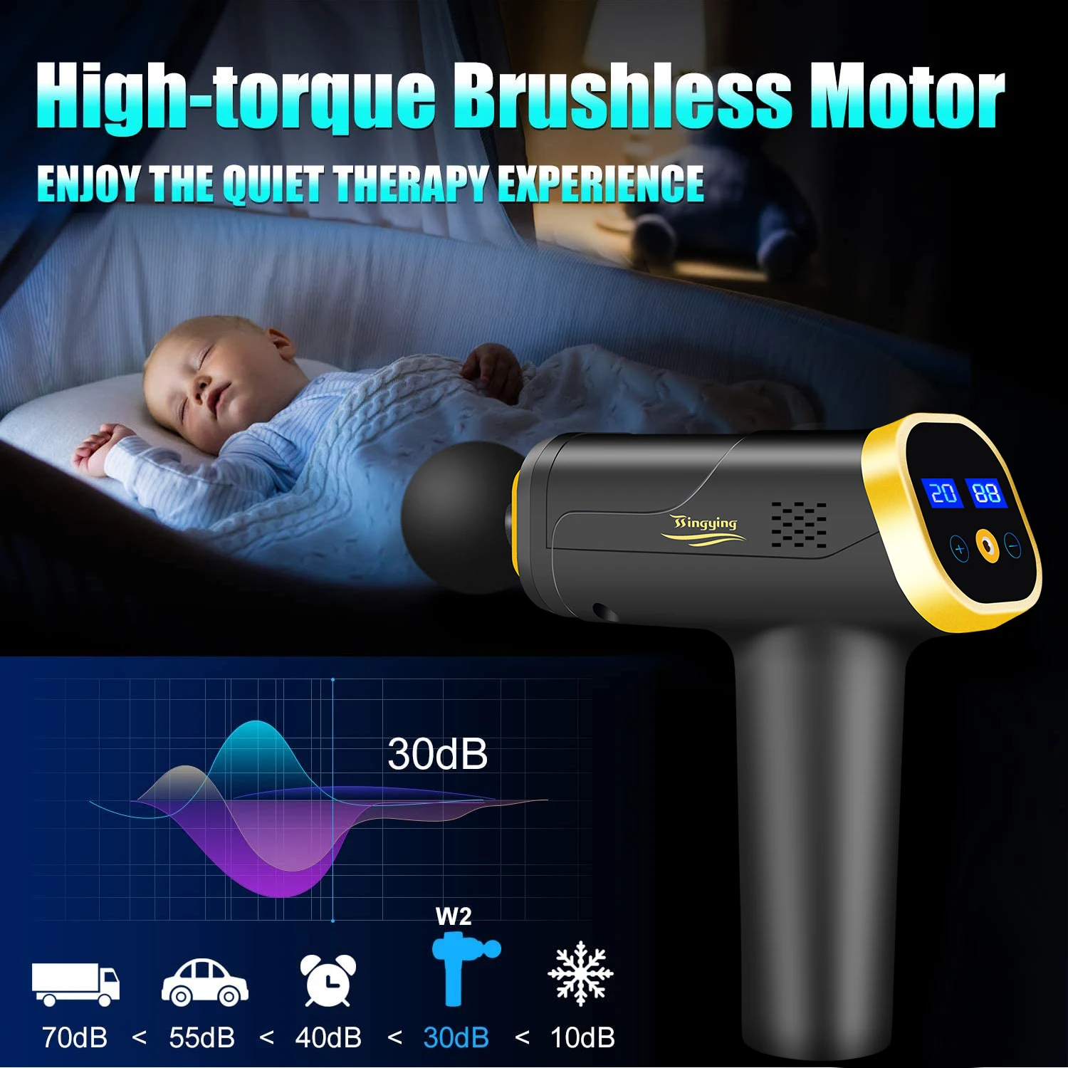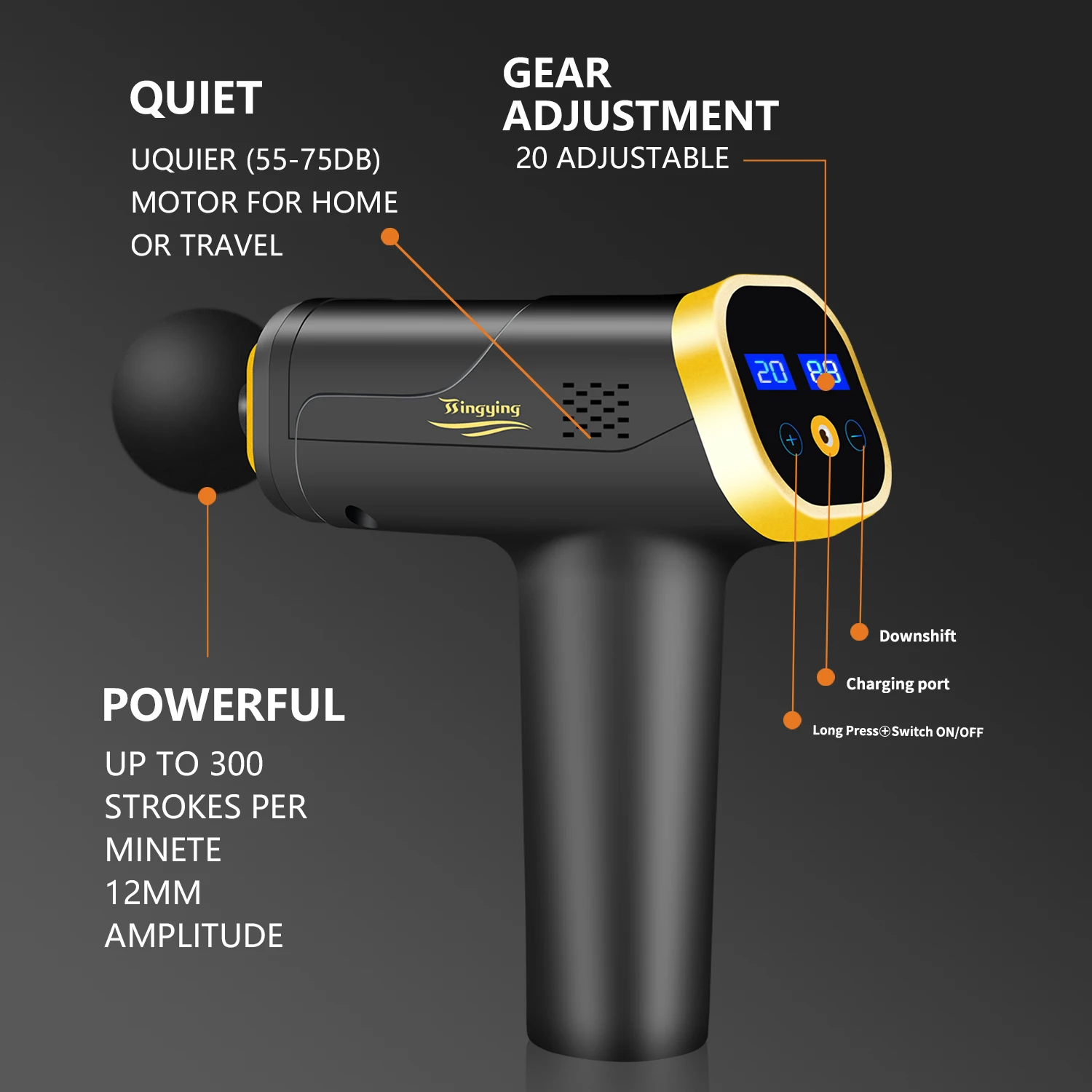 [Multifunctional Massage Gun]: The massage gun is used to relieve muscle stiffness and soreness, and promote blood and lymph circulation. For athletes, it can speed up recovery after sports and sports injuries. For personal or personal use, this is a physiotherapy gun that improves the overall health of the human soft tissues and prevents inflammation caused by adhesions between the fascia and muscles.[6 replaceable massage heads and 20 adjustable speed levels]: The massager is equipped with 6 different shaped massage heads, which can help users relax different parts of the body. The front fork massage head is designed for the spine; flat, any part of the body; bullet head for joints; first round for large muscle groups; users can change the speed of the massage gun as needed. .[Upgraded version]: The massager adopts high-quality motor, has super heat-dissipating function, does not crash, can run for a long time, and will not stop working due to overheating of the movement; At the same time, the high-precision mold tightly connects the machine head to the body Smooth sliding can effectively reduce the noise during operation, compared with 60 dB from other suppliers, PHOENIX 5.2 is quieter[Long-time work]: The wireless massager is equipped with a high-quality lithium battery, which can maintain about 4 to 6 hours of working time after each charge. Body massager with LED battery indicator so you don't have to worry about power failure[Reasonable design]: The TSINGYING handheld massager weighs only one kilogram (2.2 pounds). The ergonomically designed grip minimizes external vibration. The durable non-slip silicone grip makes the massager easier and more comfortable to hold. pleasureFeature: