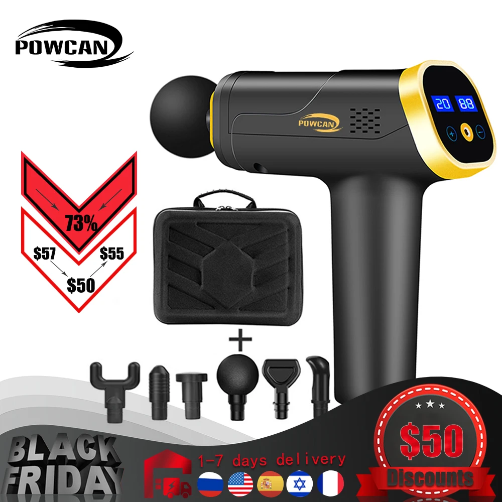 New LCD Display Massage Gun Rechargeable Deep Tissue Percussion Muscle Massager for Pain Relief Handheld Electric Body Massager